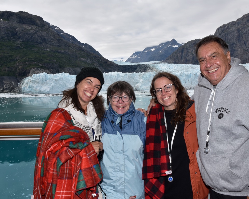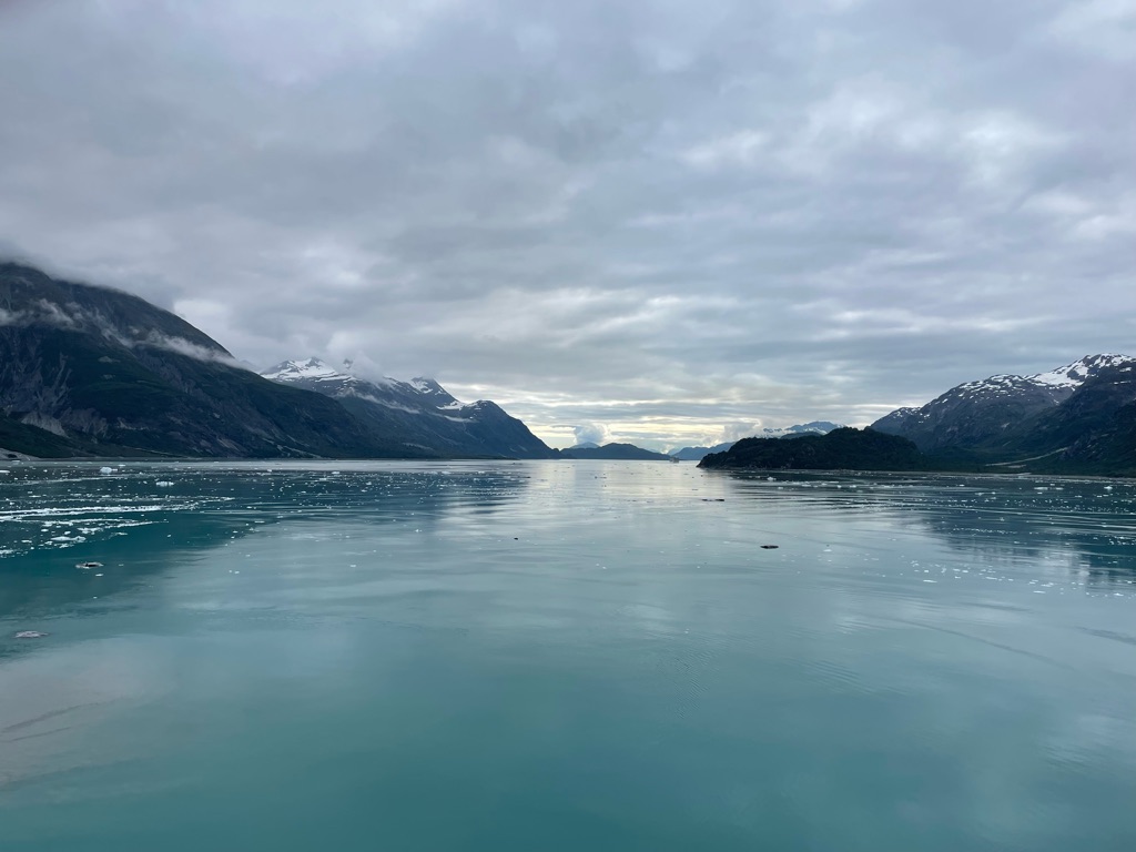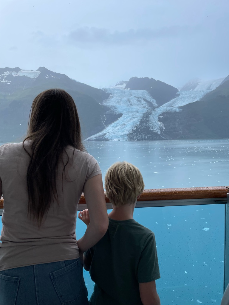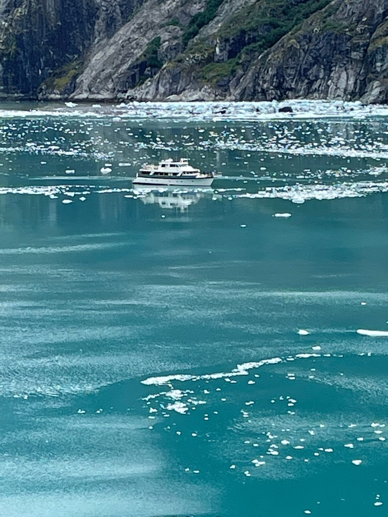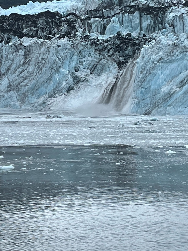 It is our last day and it was incredible to say the least, glaciers calving over and over, the crack echoing for miles across the water. The loud crack comes first and then the fall of ice splashing into the cold clear bays. We watched from our balconies- closer to the action, mist hitting our faces. The ship stays in position for an hour and turns from port to starboard so that everyone will see it all. There is no bad side of the boat.