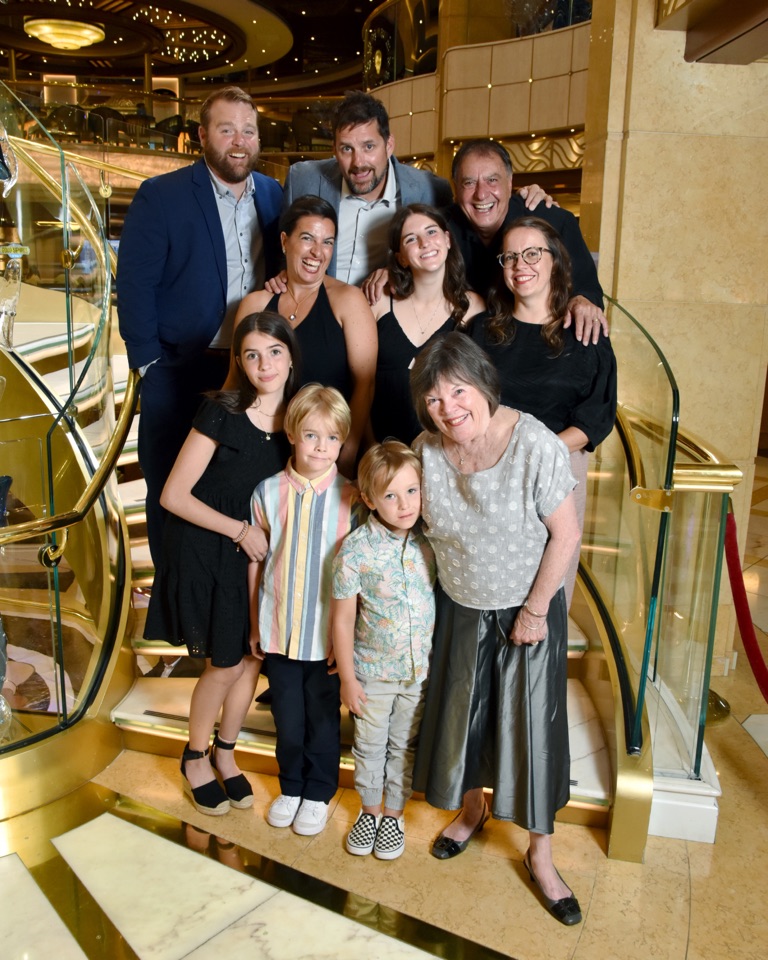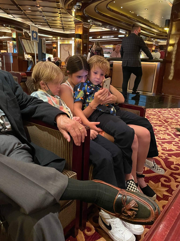 While checking in we heard “Nanny and Nonno!”, there was Foster and Wyatt with their Mom and Dad, with excited waves we said “see you on the other side!”. They were apparently just a little behind the Bradford’s. Off we went, through the next stage we passed them, Nia and Ruby noticed us, caught our attention. The excitement was building. We said, “we will wait for you!” Tony and I were thrilled to be heading into this adventure with them all by our side. We could not have planned this. The chance of this happening was miraculous to us. On the other side we hugged all round, and boarded the ship, together.
