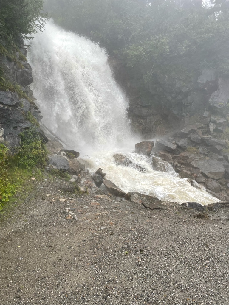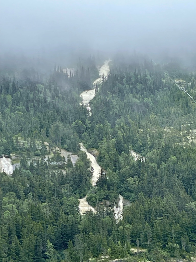(close enough to get wet) bringing down those rocks, glaciers and outstanding views along the Chilkoot Trail. The kids walked into Canada at the top, one foot in the states the other “home”.