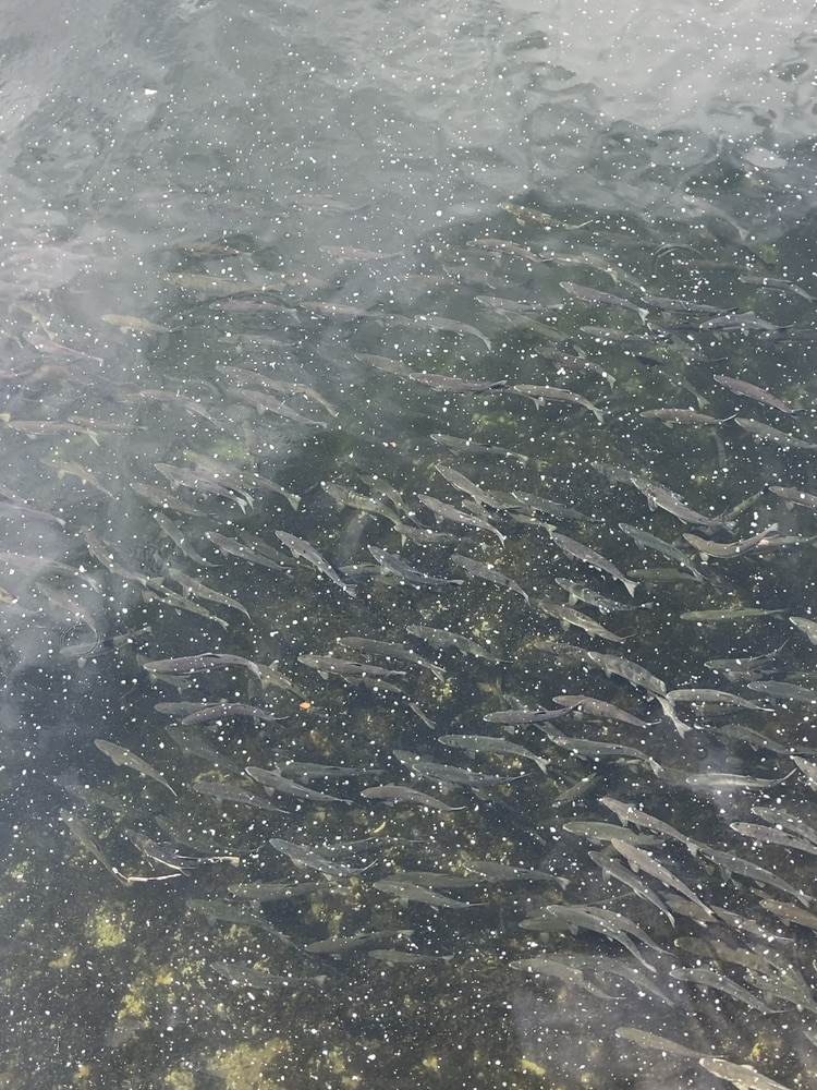 The massive school of female fish was fascinating to watch, especially when the seals came in on one of the four daily tides to hunt the selfless women creatures. \240We all loved seeing this, but the kids got hungry and yearned for the pool. \240Chris was kind enough to take the kids back to the ship, while Katie and I got to be a little selfish and shopped for a bit before returning, on-time, back to the boat.