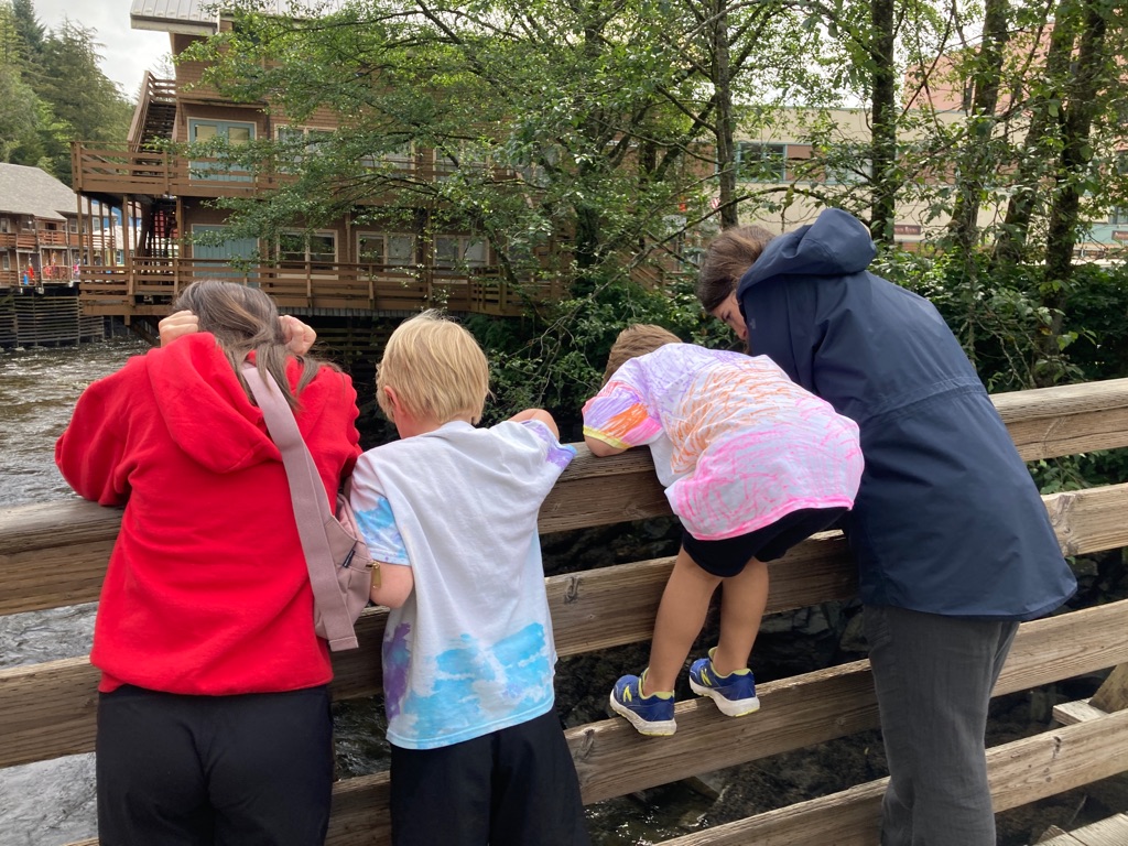 After our morning adventure, we met up with Katie, Chris, Foster, Wyatt and Ruby for an adventure down to Creek Street. \240Fueled by local donuts, and a Russian savoury treat known as pelmenis, we followed the not so delicious aroma of dead fish to the natural salmon spawning ladder. \240What we thought were rocks at the bottom of the creek, was the bodies of the sacrificed salmon mothers who, after working their hardest at making it to the spawning grounds, lay their eggs and die; their decaying bodies left behind to nourish their children as they hatch…let’s just say Katie and I could relate.