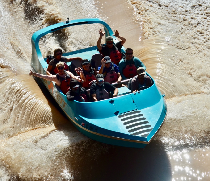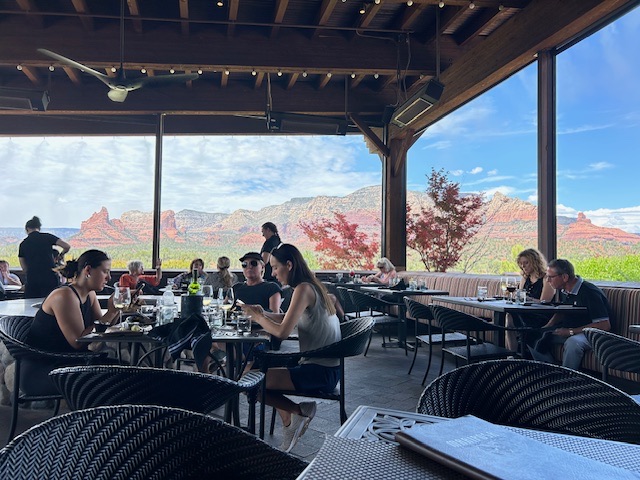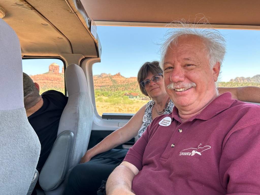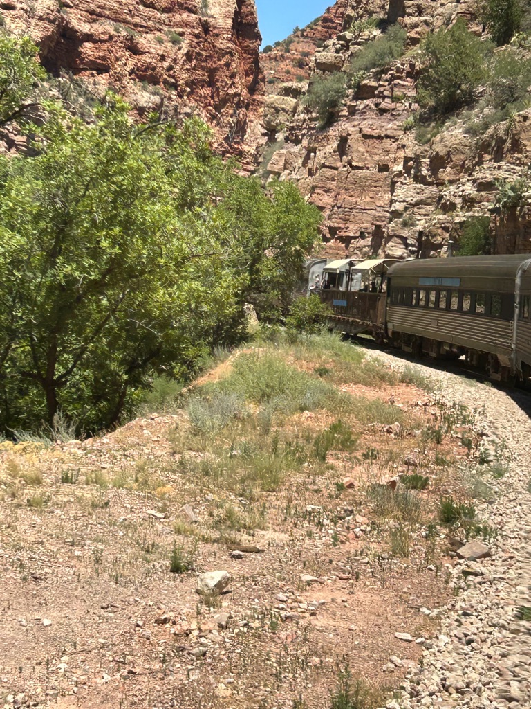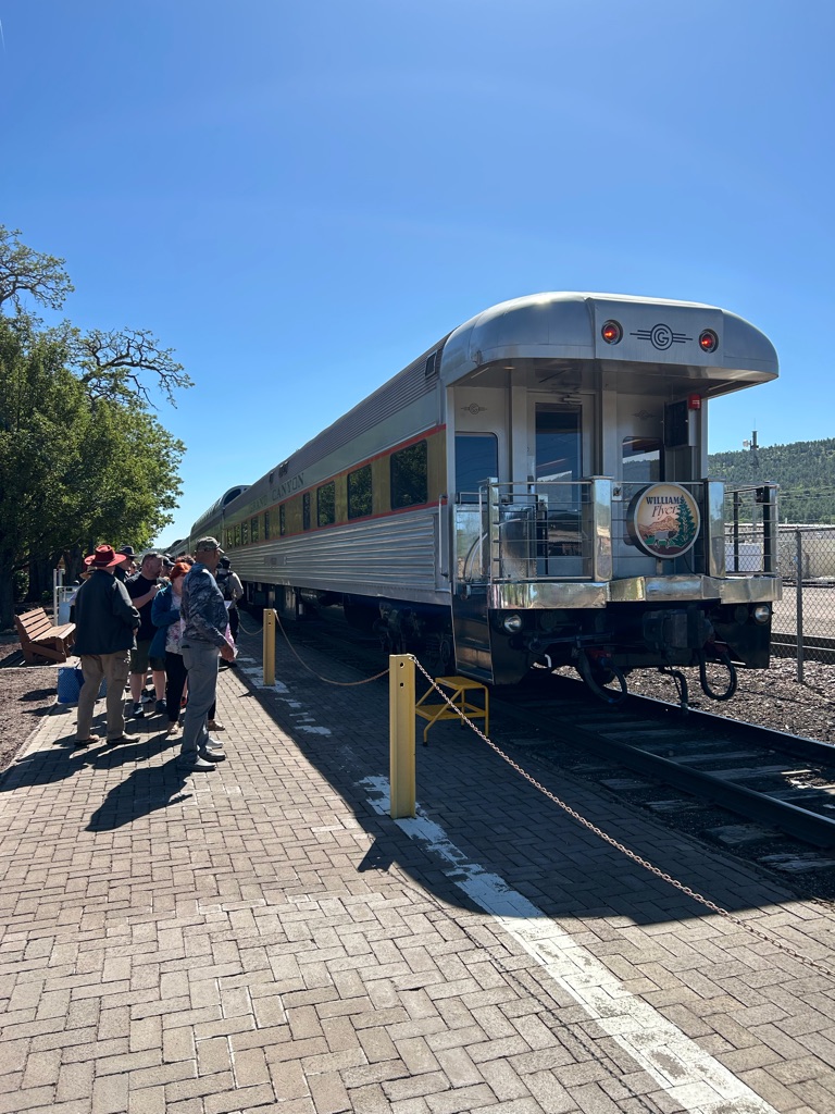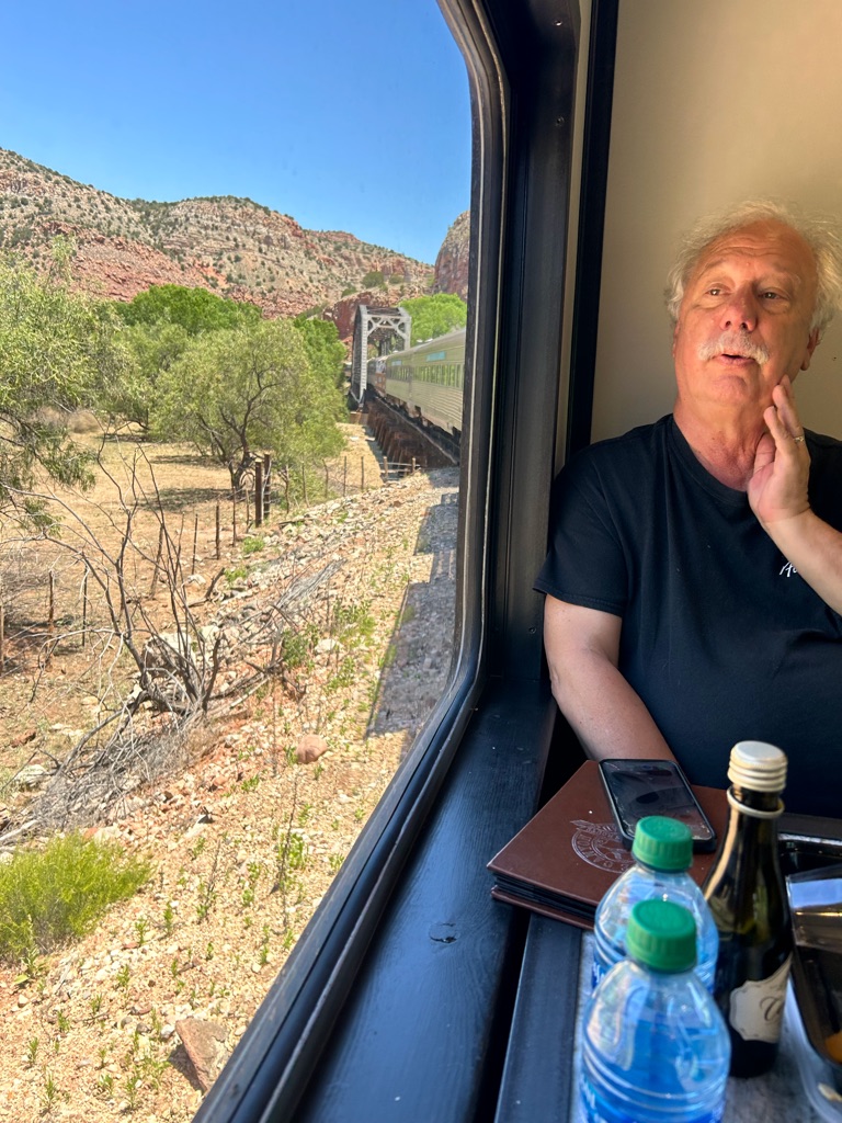 The train ride back also included food, drink, and entertainment. \240 The passengers were all very tired and subdued! Actors rode horses alongside the coach as we approached the town of Williams, and “robbed” the train! \240(Yet another way to get cash, at this point!) \240All good clean fun!