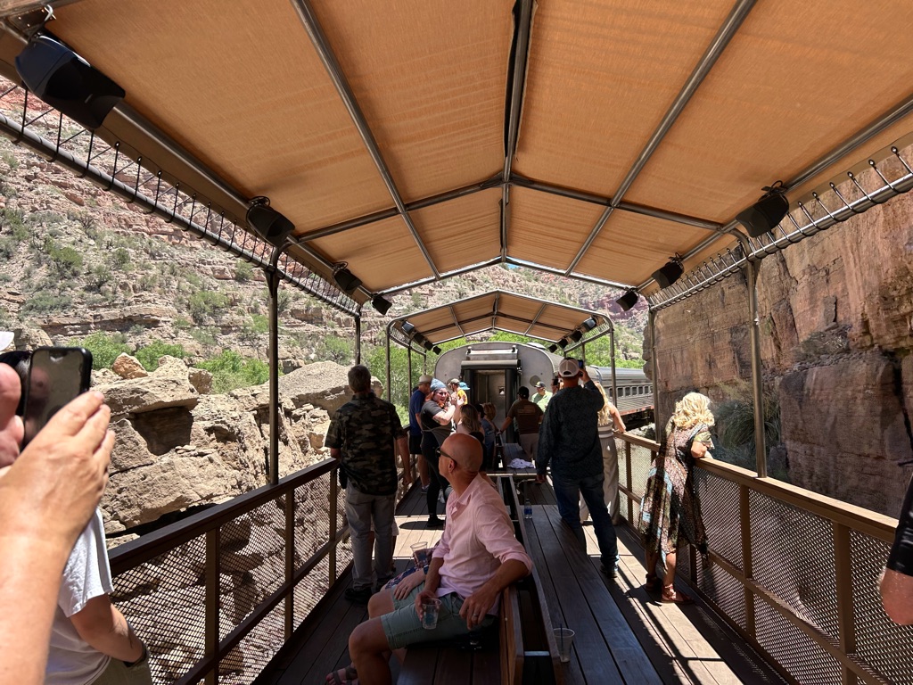 We had a luxury panoramic dome car, that featured some food, drink, and entertainment (singers, jokes, and info about the canyon) along the way. \240A very relaxing way to travel!