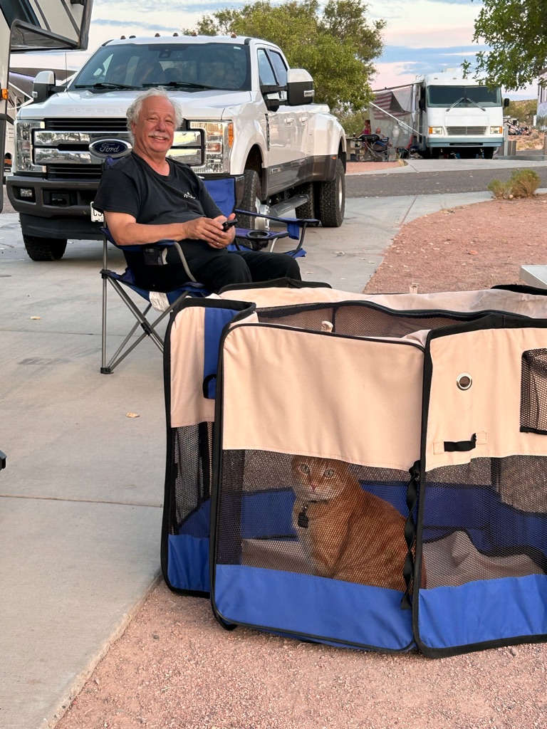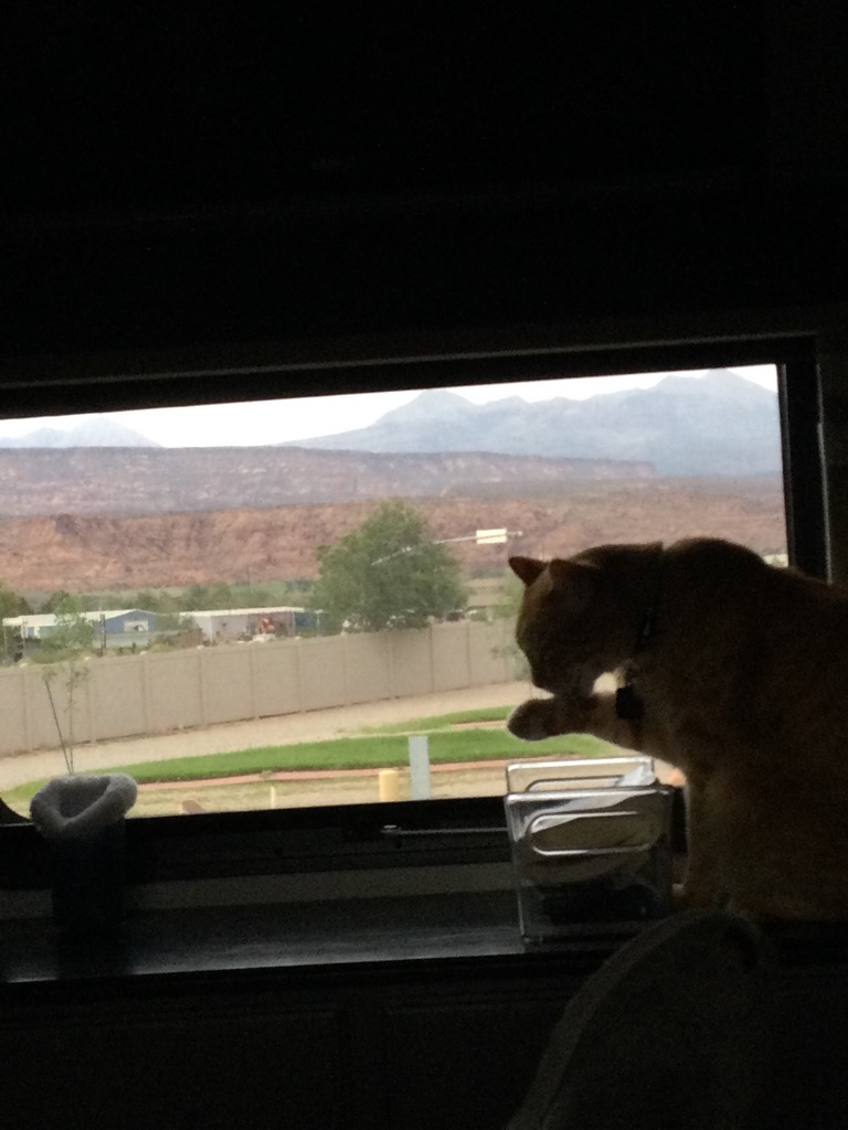 (We left our cat, Jasper, in the RV with lots of extra food, water, and the heat/AC set just so to keep him comfortable while we were gone.)