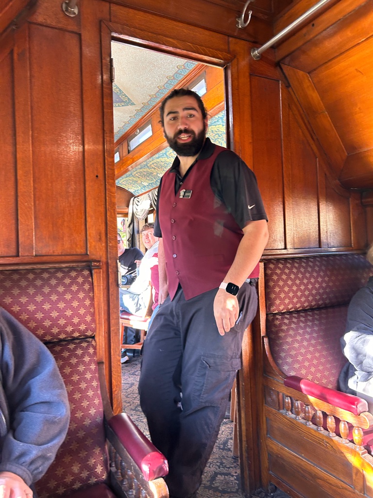 Sunday morning we boarded a train for a two hour ride. \240 It began within a short walk of our RV park.