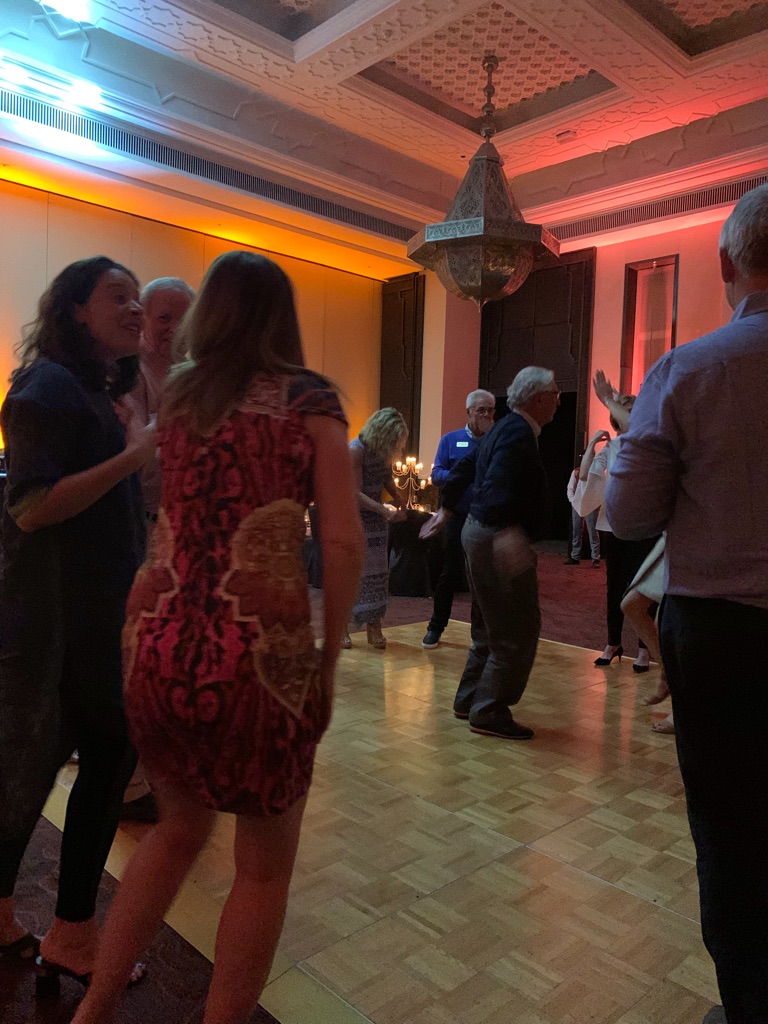 The dinner began with cocktails in the drawing room followed by private ballet performance in the Palace’s theater. From the Ballet we adjoined to the Great Hall for a fantastic dinner which began with caviar in a Faberge egg. During dinner we were entertained by a 22 piece orchestra, 3 Opera singers and a \240husband and wife violin duo flown in from Moscow. They were the most incredible violin performance I have ever seen. They were so good they had four curtain calls. Please watch the attached videos.