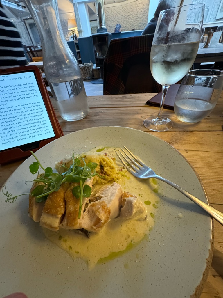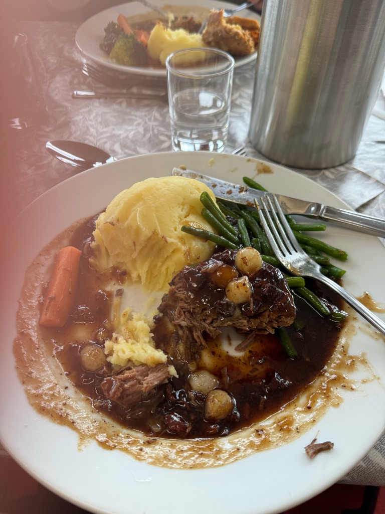 On 1/29, I flew overnight to London. Nice flight = no drama. I arrived at 9am and then had a car drive me to Blakeney, a 3 hour drive through some beautiful English countryside. \240Starving when I got there so went immediately to the bar for one of the hotels great HAM AND COLEMANs sandwiches.