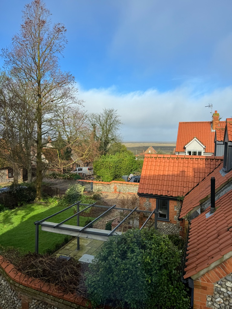 Looking out one of my living room windows (living room and kitchen on the 2nd floor so lots of light and views). The 4 bedrooms are on the ground floor. The stairwell from ground floor to top is a bit narrow and steep. \240I hope I survive it. \240