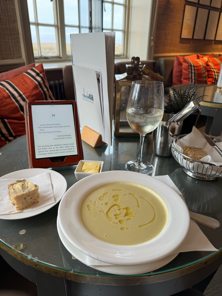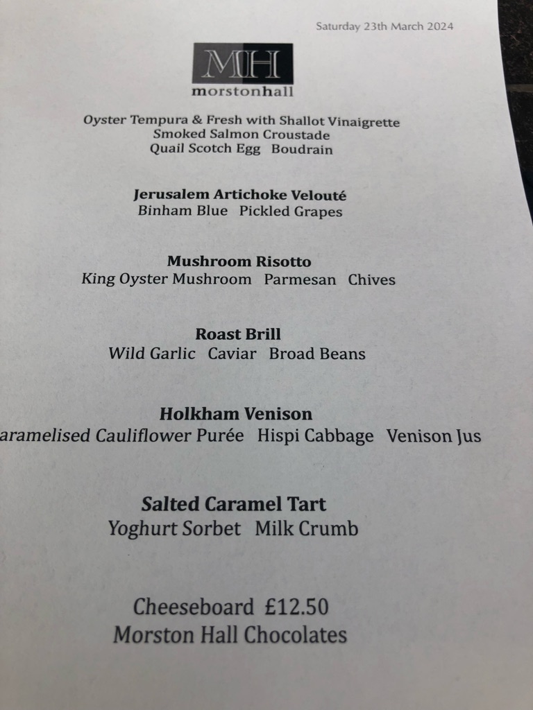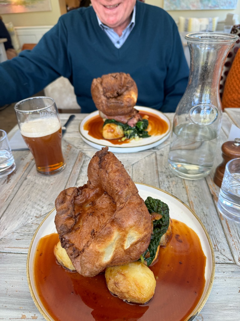 Today we drove north to Brancaster. \240We had a brilliant lunch at the White Horse. We overlooked the coast and enjoyed a beautiful day.