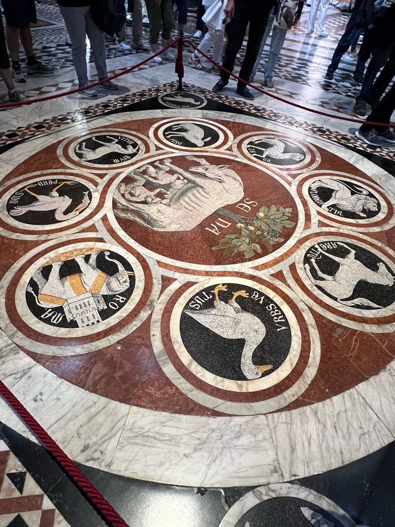 It is interesting that this “pagan” mosaic that depicts the Roman mascots of the surrounding cities is found in the center of the entrance to the cathedral!