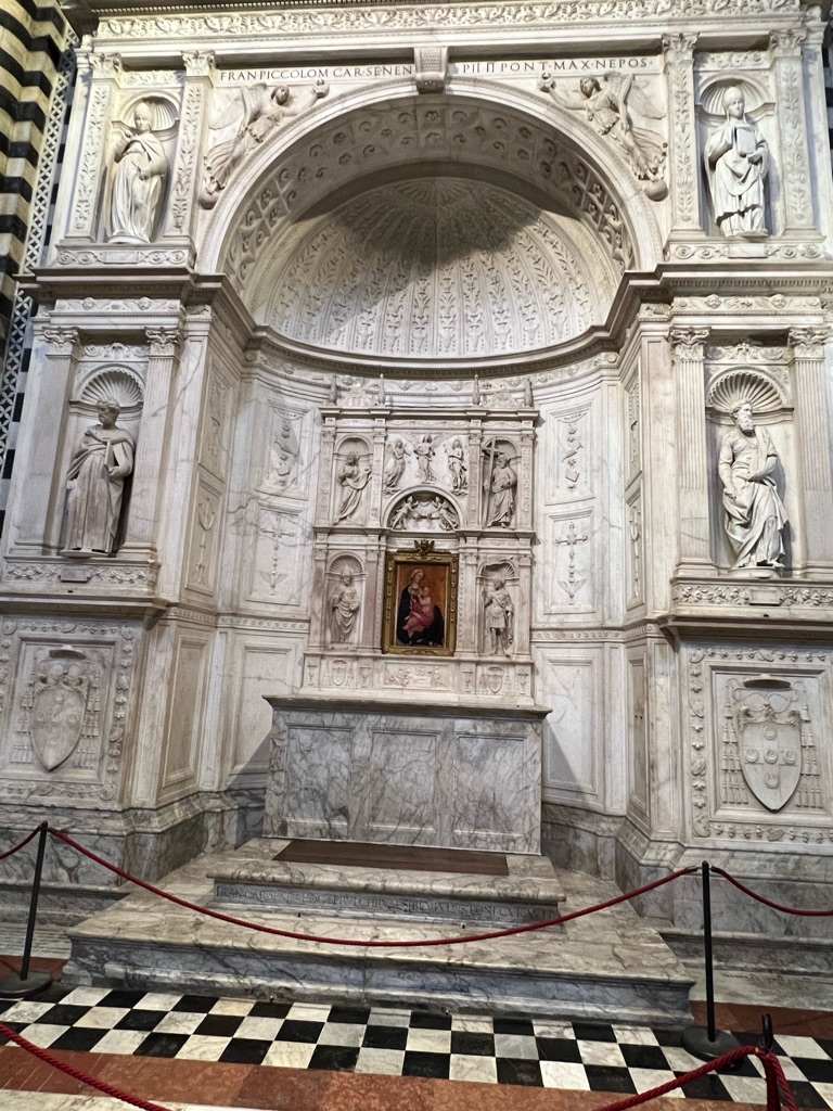 There are thirty-five statues of prophets and patriarchs grouped around the virgin. The finest Italian artists of that era completed works in the cathedral. These artists were Nicola and Giovanni Pisano, Donatello, Pinturicchio, Lorenzo Ghiberti, and Bernini.