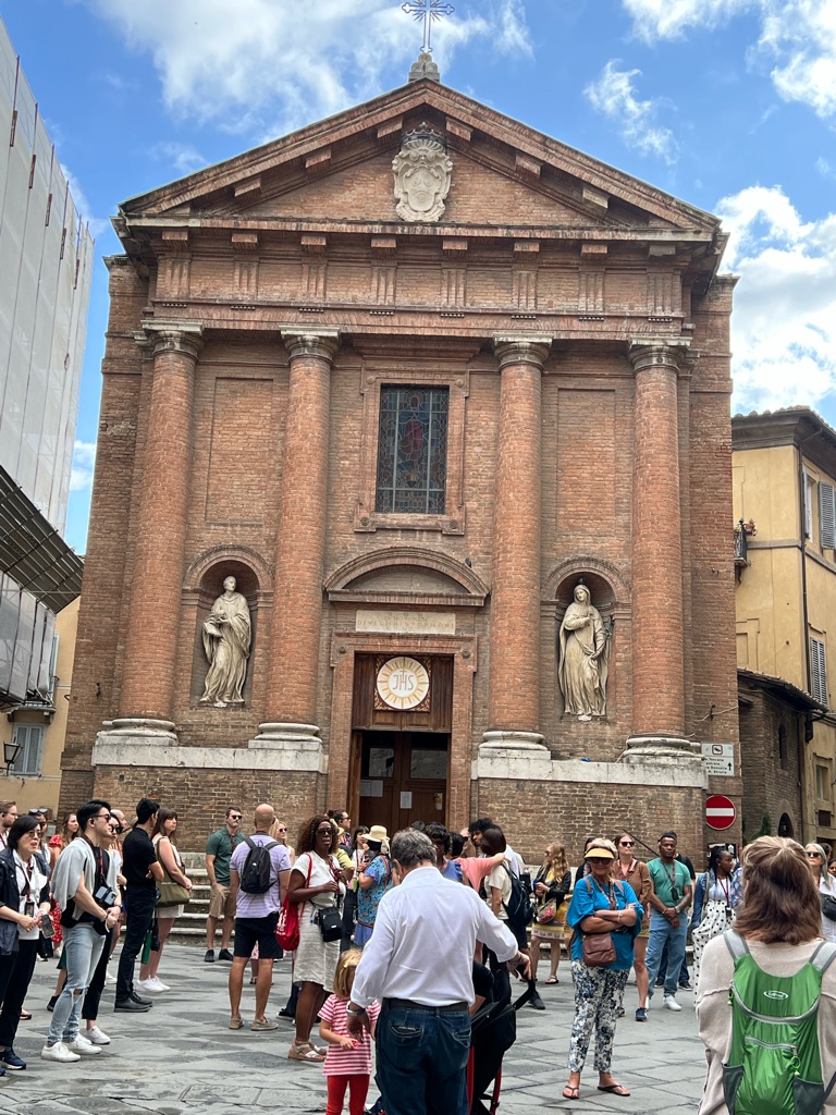 St. Catherine was born in Siena in 1347 and this is where she spent her childhood alongside her 23 siblings. St Catherine's religious devotion became apparent at an early age and she entered a Sienese Dominican order of nuns, devoting her life to caring for the poor and ill of her native town. Although she was a Dominican nun, she was able to spend much of her life living in the house of her birth. The Basillica of Saint Catherine was dedicated to St Catherine in recognition of her single handed efforts to fight corruption in the church, andto convince the pope, who was seated in Avignon, France, at the time, to restore the papal seat to Rome.