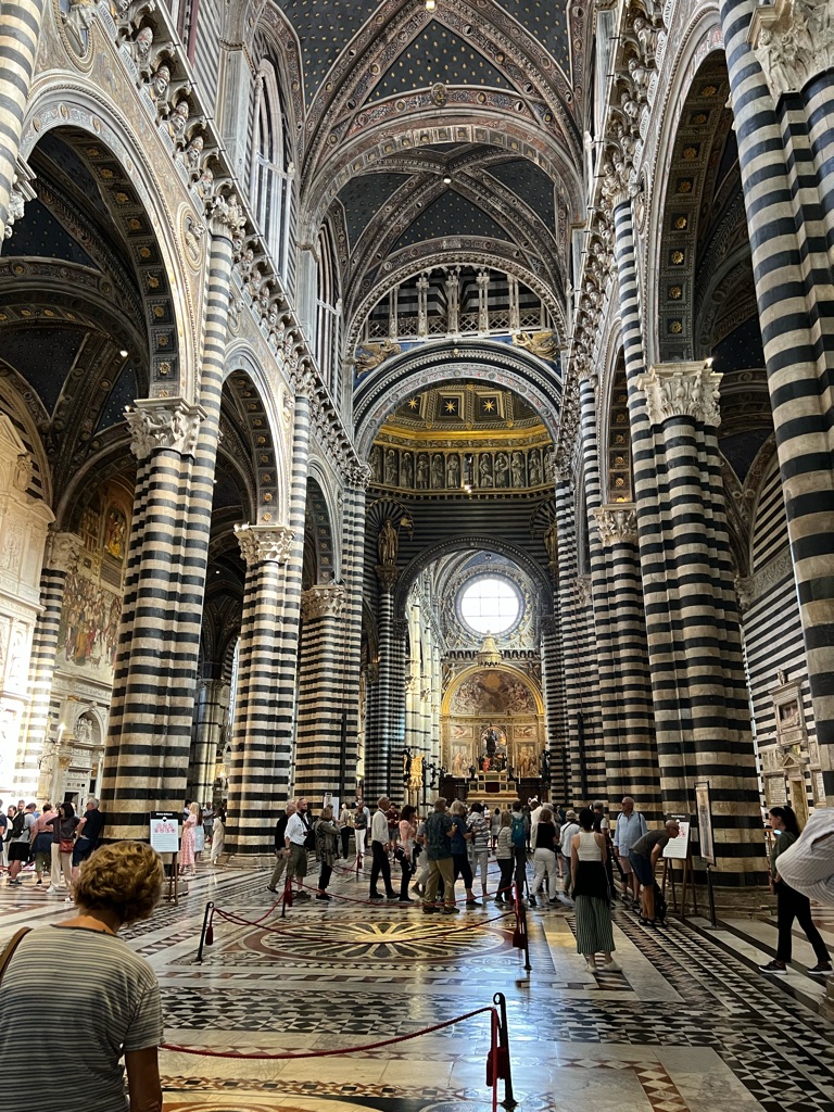 The exterior and interior are constructed of white and greenish-black marble in alternating stripes, with the addition of red marble on the façade. Black and white are the symbolic colors of Siena, etiologically linked to black and white horses of the legendary city's founders, Senius and Aschius.