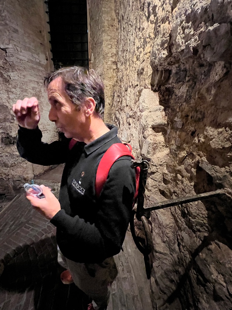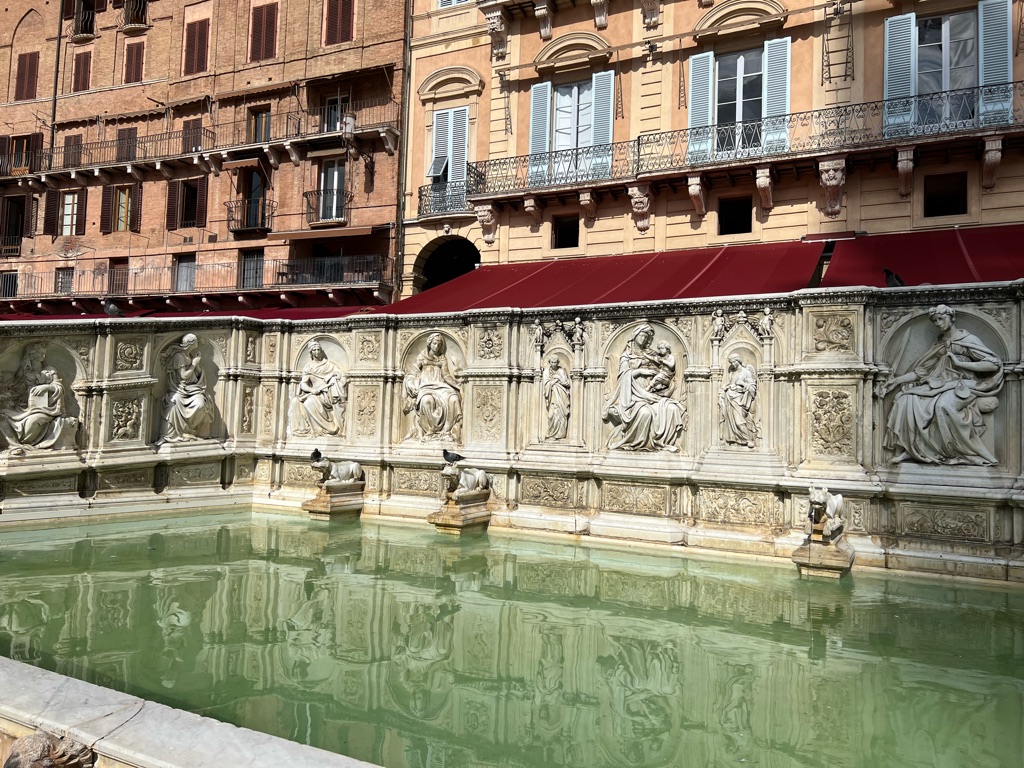 Charles V, after visiting the Sienese "bottini", is supposed to have exclaimed that Siena was two cities in one, each as beautiful as the other, the first underground, the second above. Water was conveyed to Piazza del Campo - the central plaza - through a master-conduit, most likely first utilized around 1342. "The Sienese saluted the event with great rejoicing", wherefore the fountain, appropriately named Fonte Gaia (Joyous Fountain), was built the following year (1343). The fountain was replaced several times and changed from Gothic to Renaissance style. Interestingly, it’s thought that the foundation contributed to the huge losses due to the bubonic plaque.