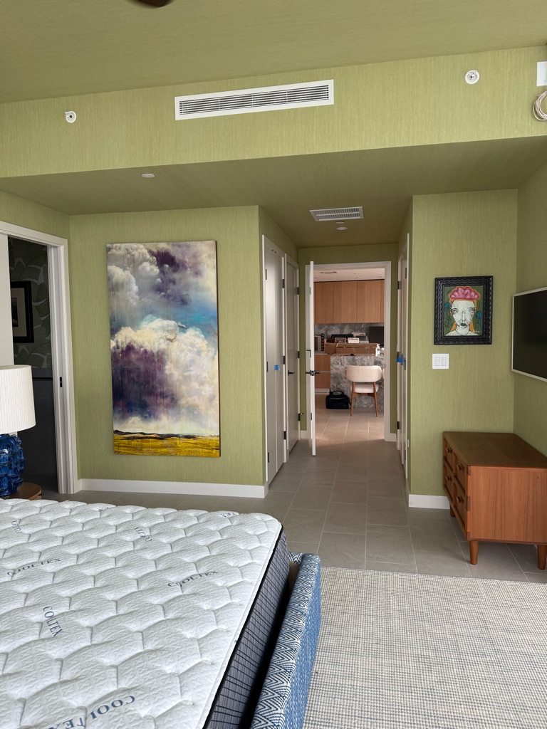 Entry mural is so happy and fun, \240They hung all my new and old art on Friday night. \240Natalie loved my collection. Looks great.
