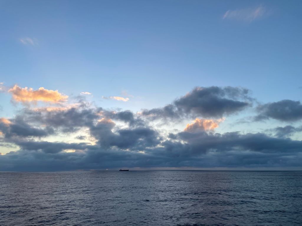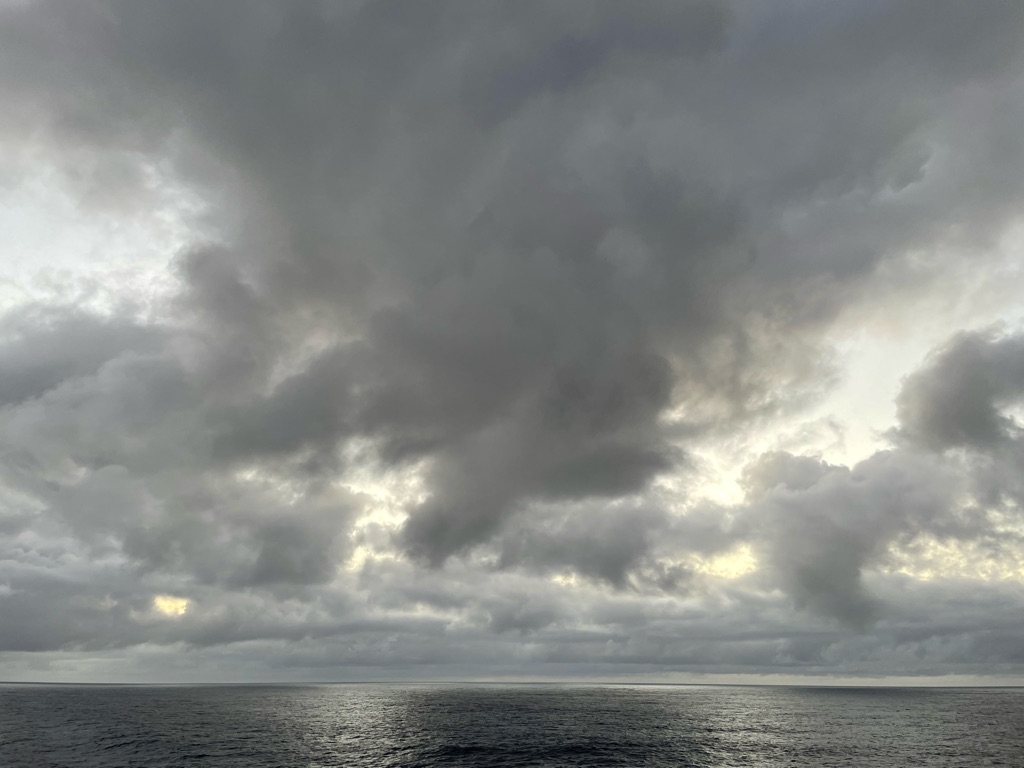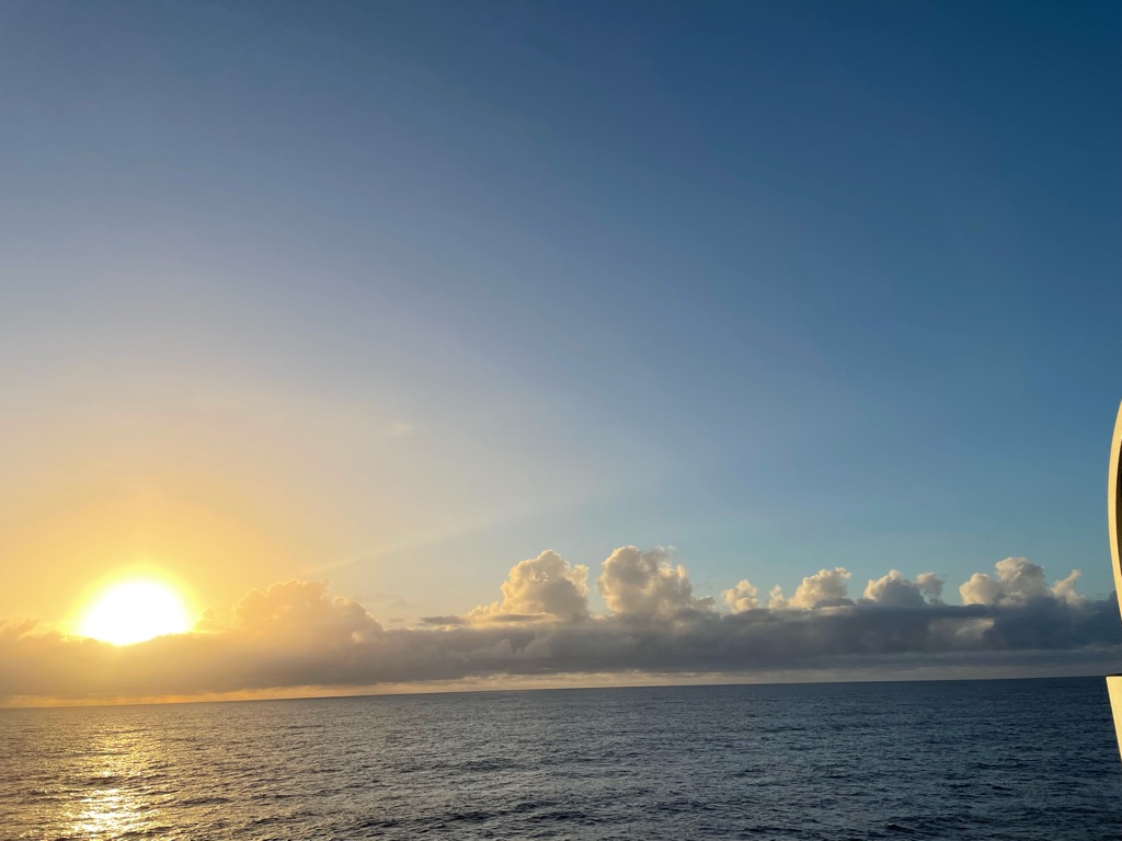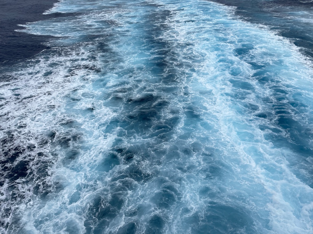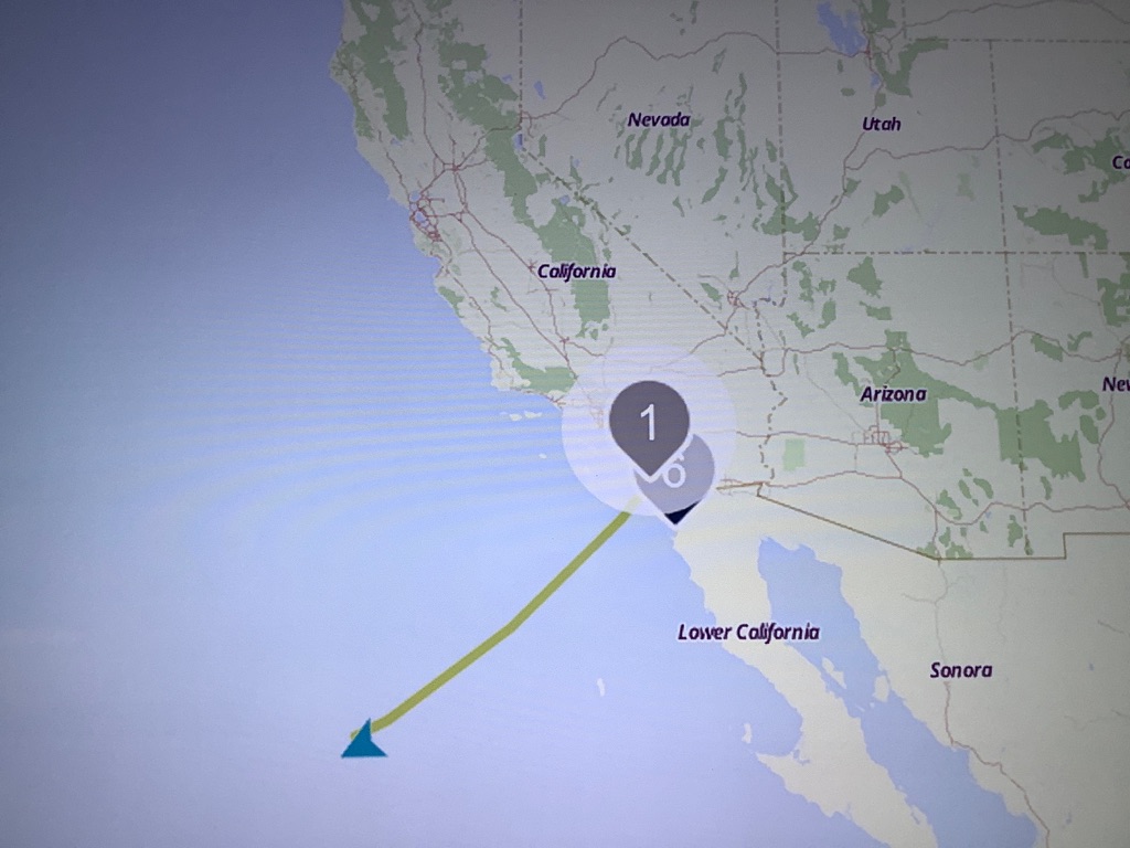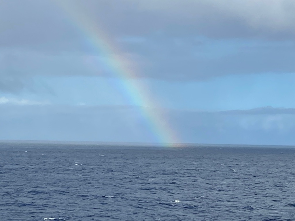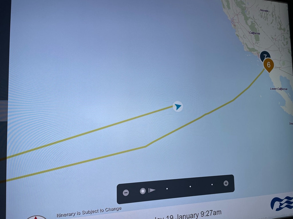 The winds were high off the California coast and the Captain warned us of rougher seas causing a more southerly route at the beginning of our journey. Yes there were rollers but not white caps that lulled us to sleep shortly after our dinner. I felt like I was in a hammock! Loved it.