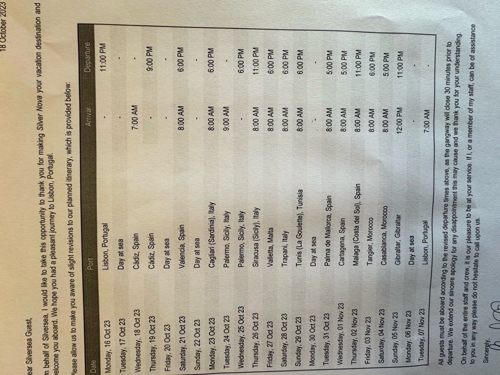 Tomorrow, Cynthia and I, begin a one month adventure! \240We fly off to Lisbon Portugal 🇵🇹 tomorrow evening. \240A couple days in Lisbon and on Monday, 10/16 we board our ship, the Silver Nova, for a 22 day cruise through the Mediterranean. Concentrating on Sisley, Sardinia and North Africa. \240We are hoping that recent current events will be far from a problem yet not far from our minds as we carry on. \240This world is so crazy. \240I’m happy to get away from the pathetic politics in my own country but unhappy that I’m going to a region that has such upheaval. \240I shall keep you posted on all that.