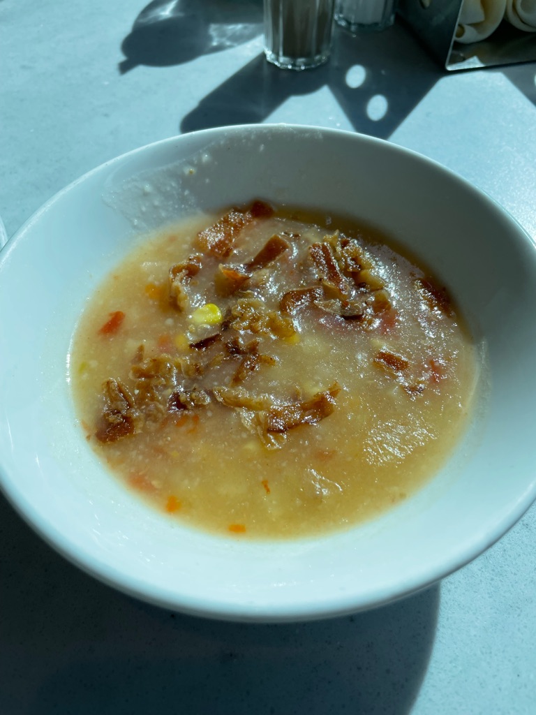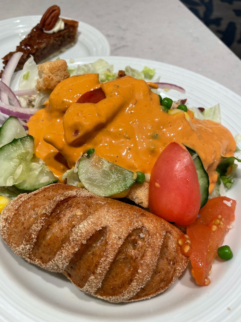 The linguine in clam sauce had some grit in it, which is common when you’re dealing with clams. However, that started the downward turn into the main dish. \240Next was the fried chicken, which sounded amazing. I should’ve known that a bunch of cooks from foreign lands could not make American style fried chicken with biscuits and gravy.