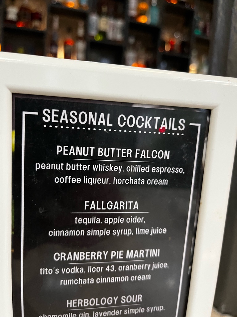 And just a little nightlife for us. We went back to the hotel and dropped off Missy and then I had to have a drink called the peanut butter falcon - walked by that sign for the third time so stopped in for one. It was very yummy. It was a whiskey drink with a few other things thrown in.