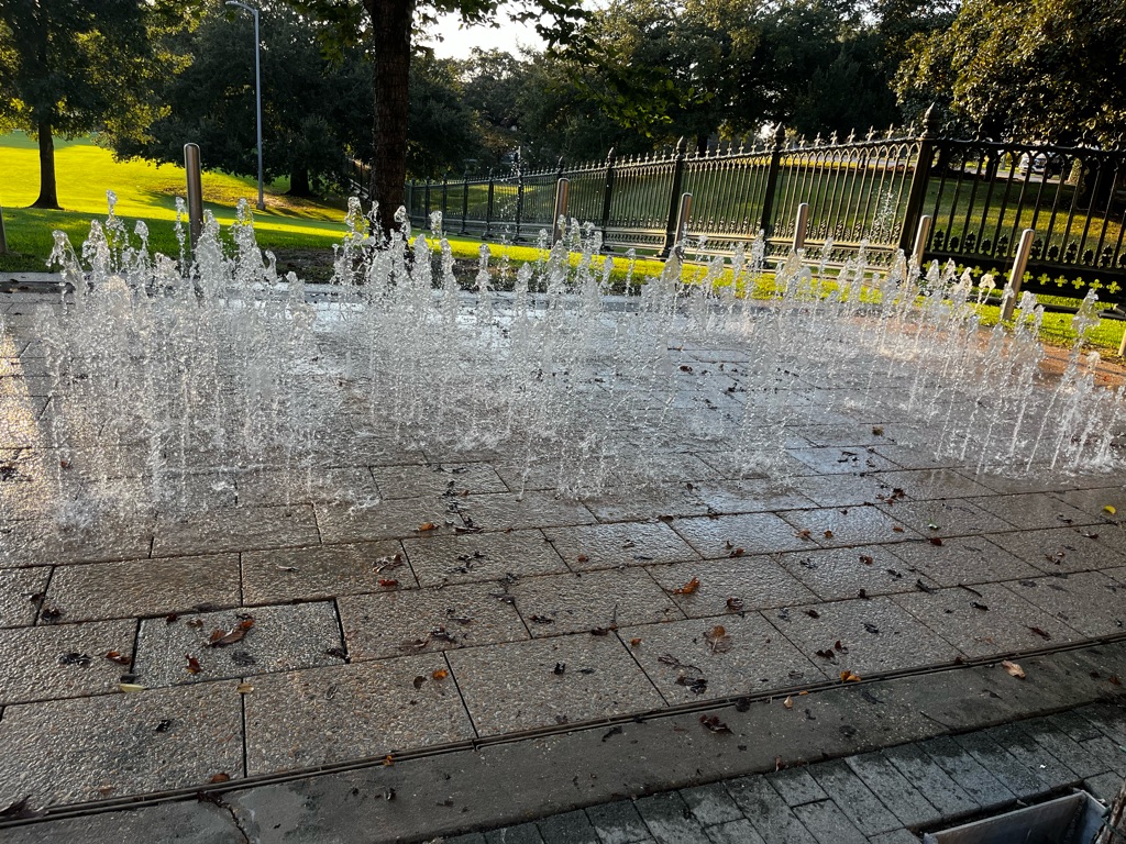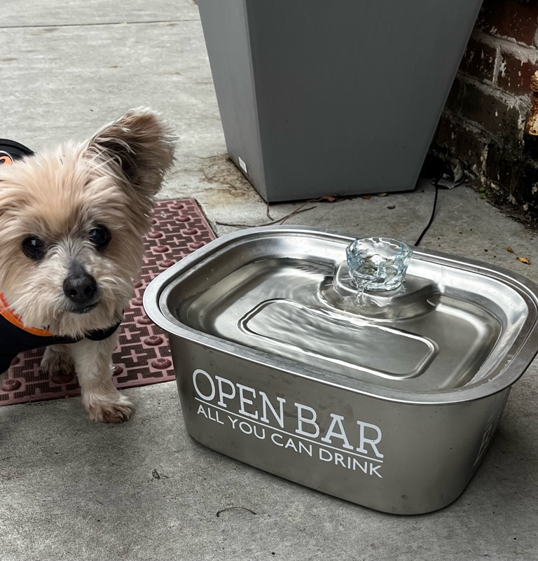 Time to wander back to the hotel to rescue Missy for a walk around the neighborhood. \240Gott to see some squares, some really cool architecture and a fun little water bowl.