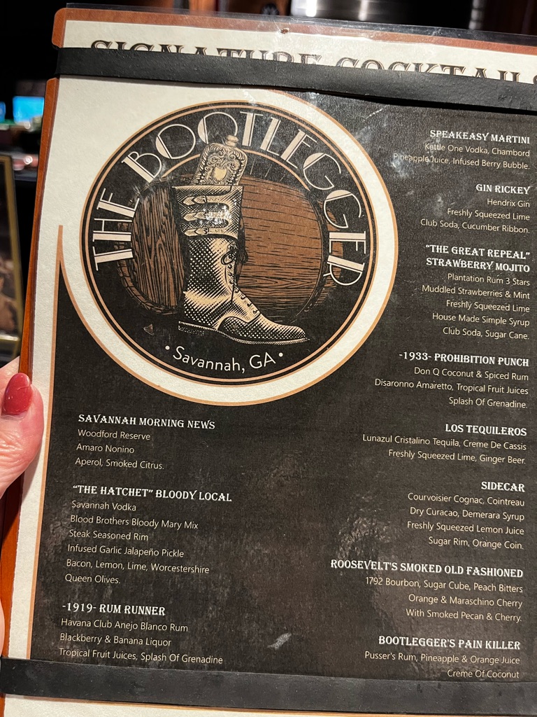 To the Riverwalk for another stop and had an old-fashioned at The Bootlegger. Diane was on beer. We learned on this quick little tour that Georgia is very particular about their identification rules. You not only had to have a valid drivers license no matter what your age was - valid meaning not expired. Unfortunately one of us had an expired license and got turned down a couple of times for a drink. Most people were reasonable, considering our age and served \240us a drink anyway.