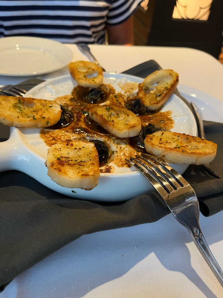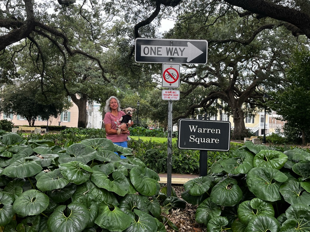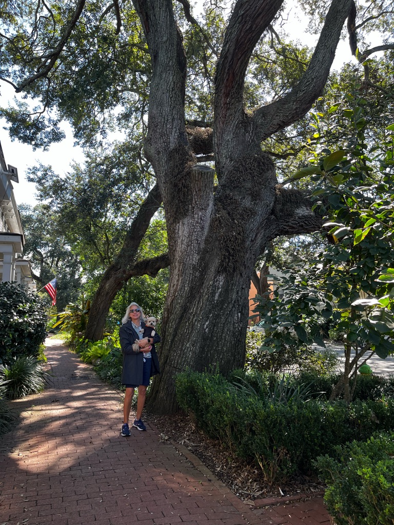 And here we are in Savannah for the next four nights. Since we arrived a little later in the day, we had already planned on having dinner in our restaurant. We had a little bit of a hiccup checking in, but ended up in a rather large suite. Kimptons are beginning to be a little disappointing so we may be replacing them with another boutique hotel experience. The restaurant at our hotel was Italian and we had ziti with short raised ribs. Also took a quick walk down to the river with Missy to get our bearings.