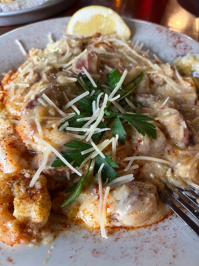 Shrimp and grits that were so rich. I could only eat about a quarter of that plate.