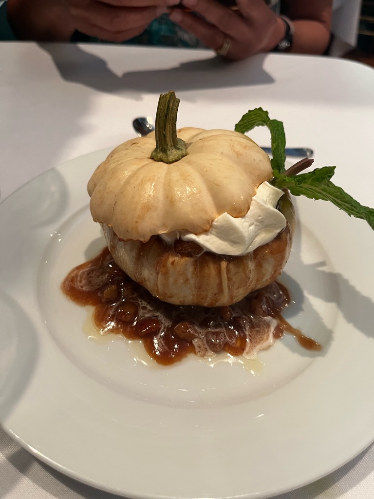 The cutest pumpkin pie ever - \240really it was pumpkin filling inside of a mini pumpkin.