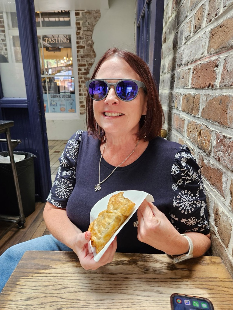 Our tour started at their store where we had a little sample of pickled okra, cheese, straws, peach, jam, and pecan logs. We then made our way to the British pie company. I thought we were going to try pies but no we tried sausage rolls. These are big sausages inside a puff pastry not a big sausage fan so had a couple of bites, but that was about it.