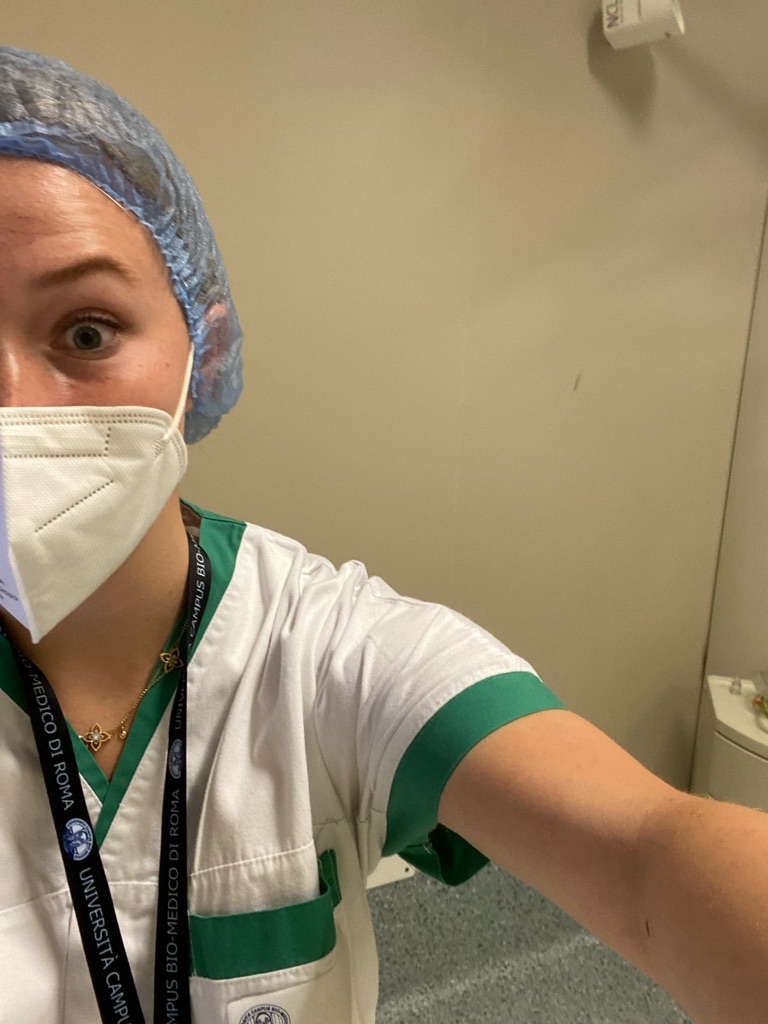 Today is the first real day of Shadowing in Campus Bio Medicá Roma! In the morning we took the train to the hospital, had some time for coffee at the hospital cafe and changed into our scrubs. The kind man at the hospital cafe always draws smiles on my cappuccino in the morning and helps me to get the only food that is gluten free at the hospital— rice crackers. It is always fun having friends within the hospital.
