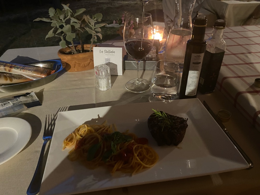 For dinner I went to the other restaurant on property and was introduced to chef massimo. The hotel had already said that I was gluten free and he had prepared a special pasta for me! It was so nice and delicious. For dinner I had a caprese salad, the gluten free pasta, and a giant slab of meat. The exact name and kind of the meat was lost in translation, but it was freaking delicious.