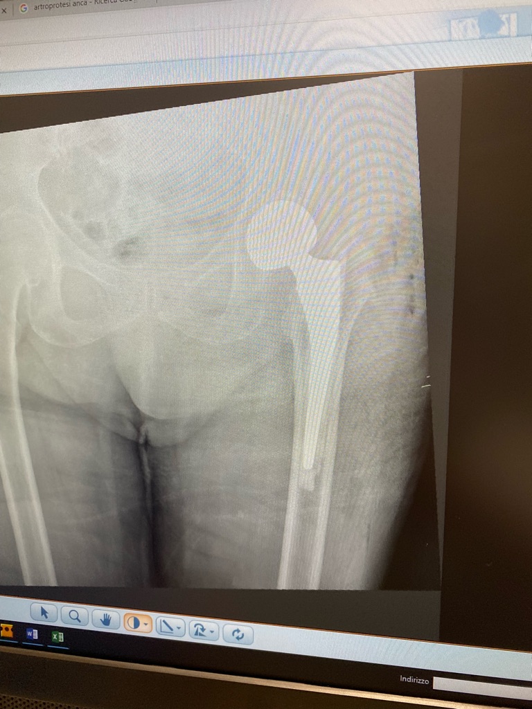 This is a Fitmore Hip Stem System and provides the patient an ability to move with increased normalcy following an injury to their hip. In this case the ball (femoral head) and the stem portion were fixed together, because the patient was a bit older with a more sedentary lifestyle.