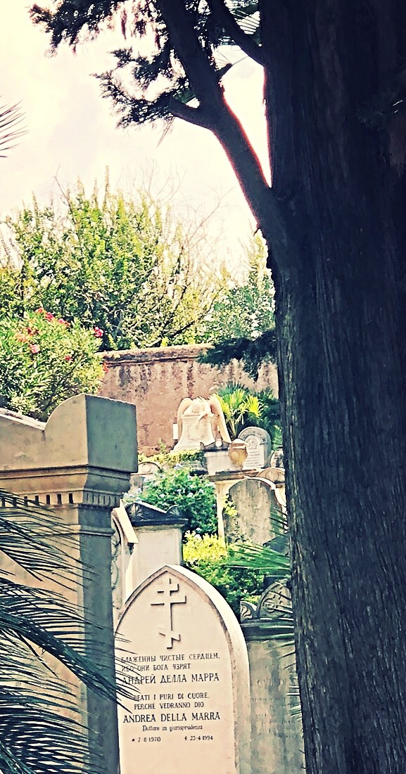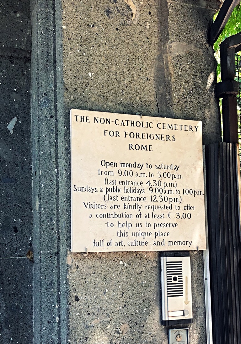 Walked from my B&B to the entrance gates of The Non-Catholic Cemetary in Rome, and yes, there was a bar across from the entrance!