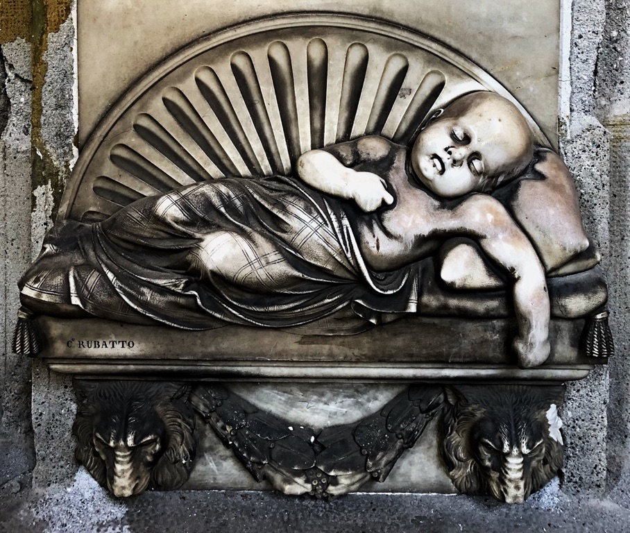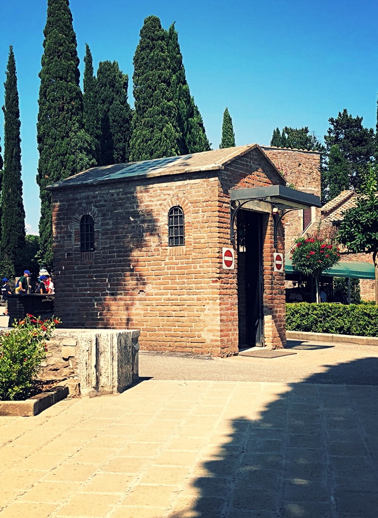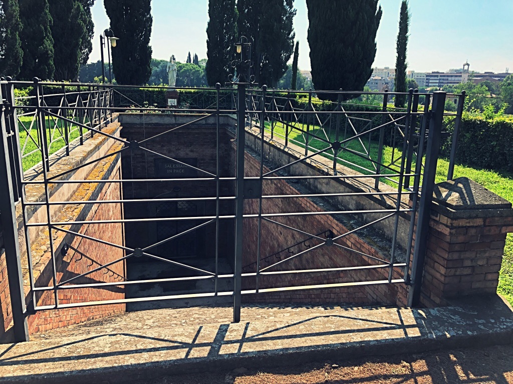 Walking further along the Appian Way there were random private family catacombs. This catacomb was locked up tight and had a monument by a child’s gravesite outside the catacomb.