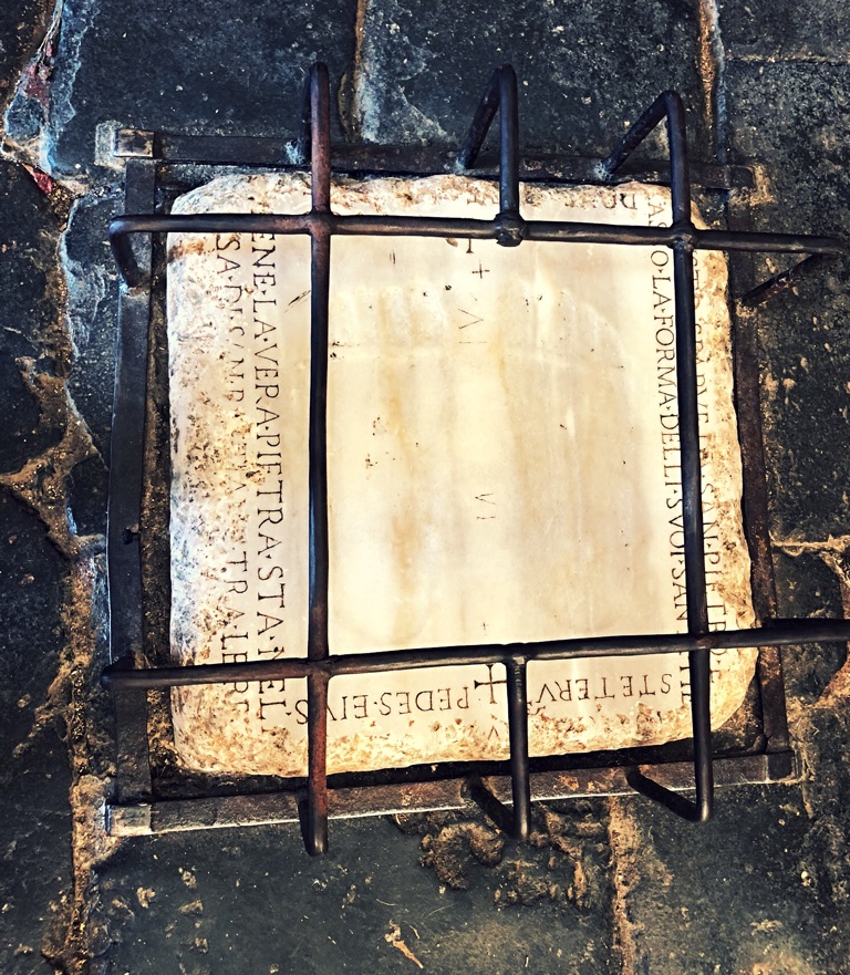 Domine Quo Vadis Church marks the spot where St. Peter saw a vision of Christ when \240he was running from religious persecution in Rome. Christ’s footprints remained and a cast was made of them.