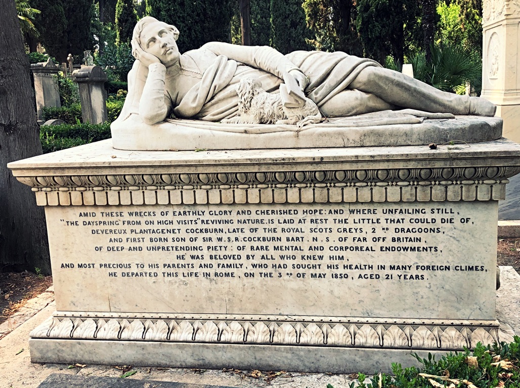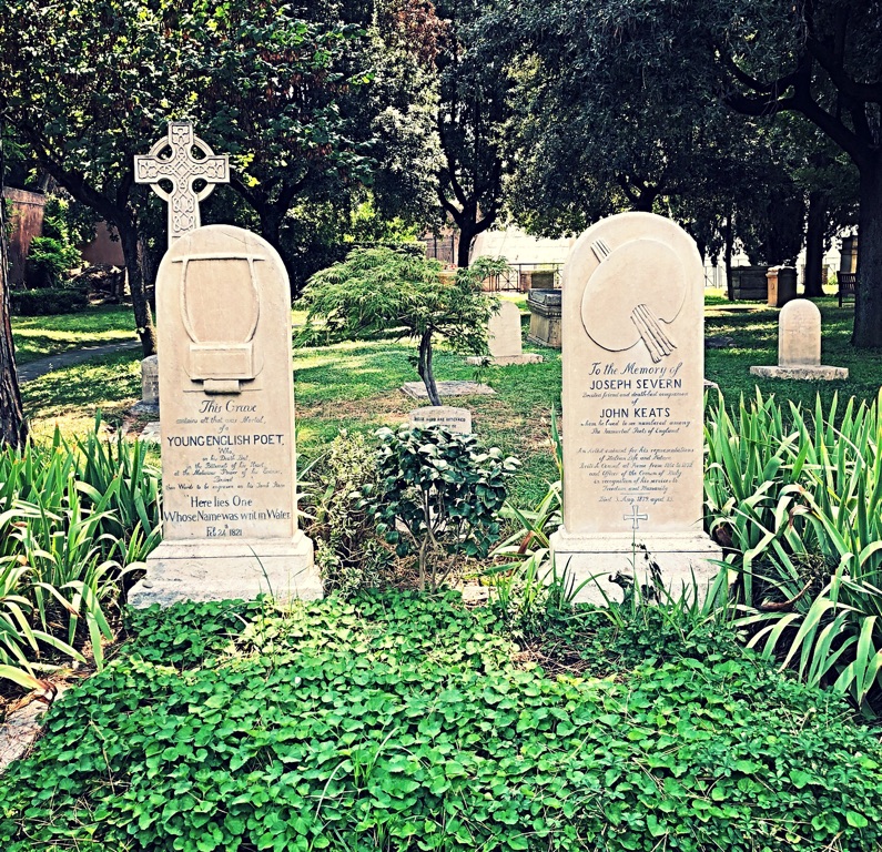 The English poet John Keats is buried here and has quite a fan following visiting his grave. At Keats request, his monument does not have his name, but a bit of his poetry.