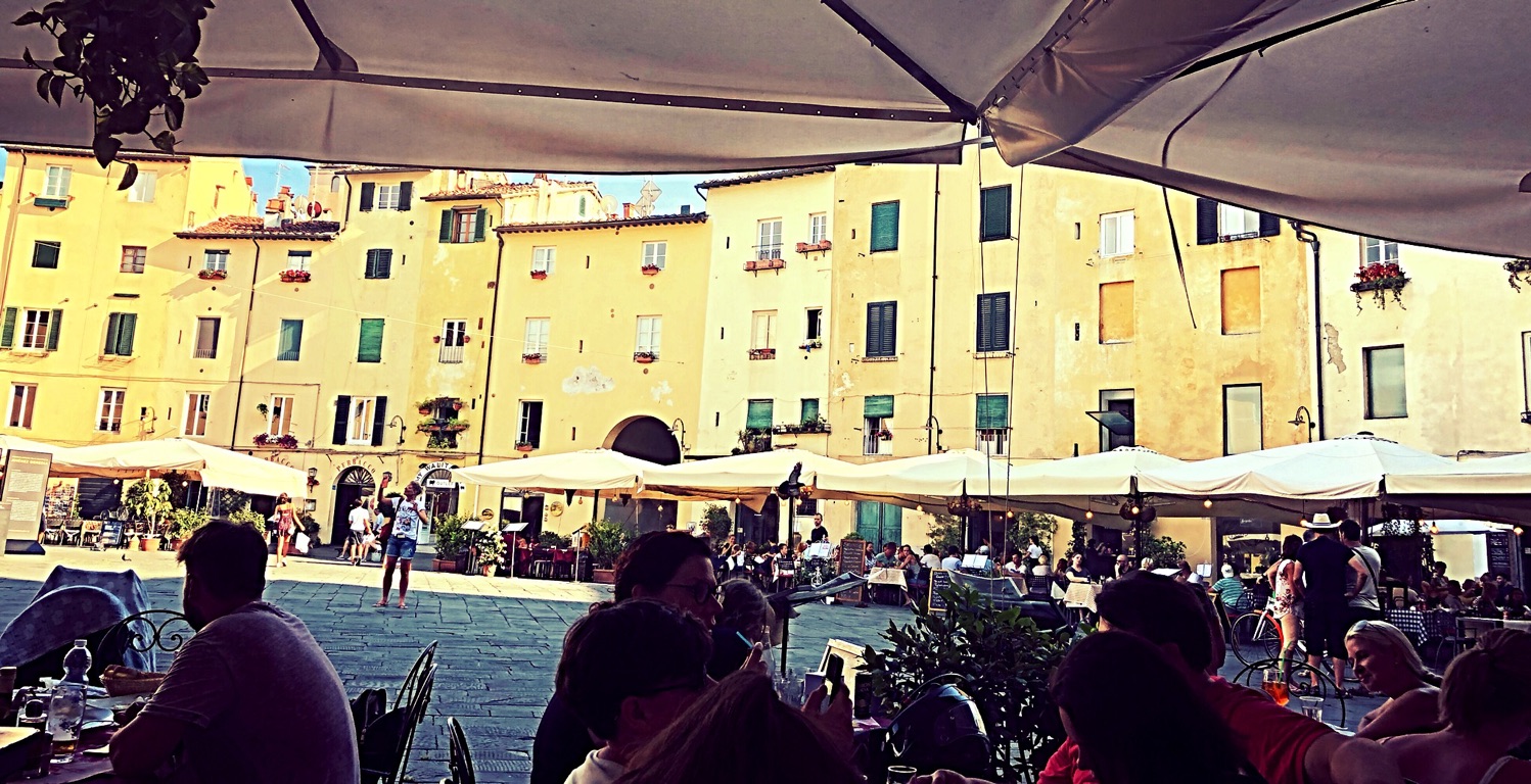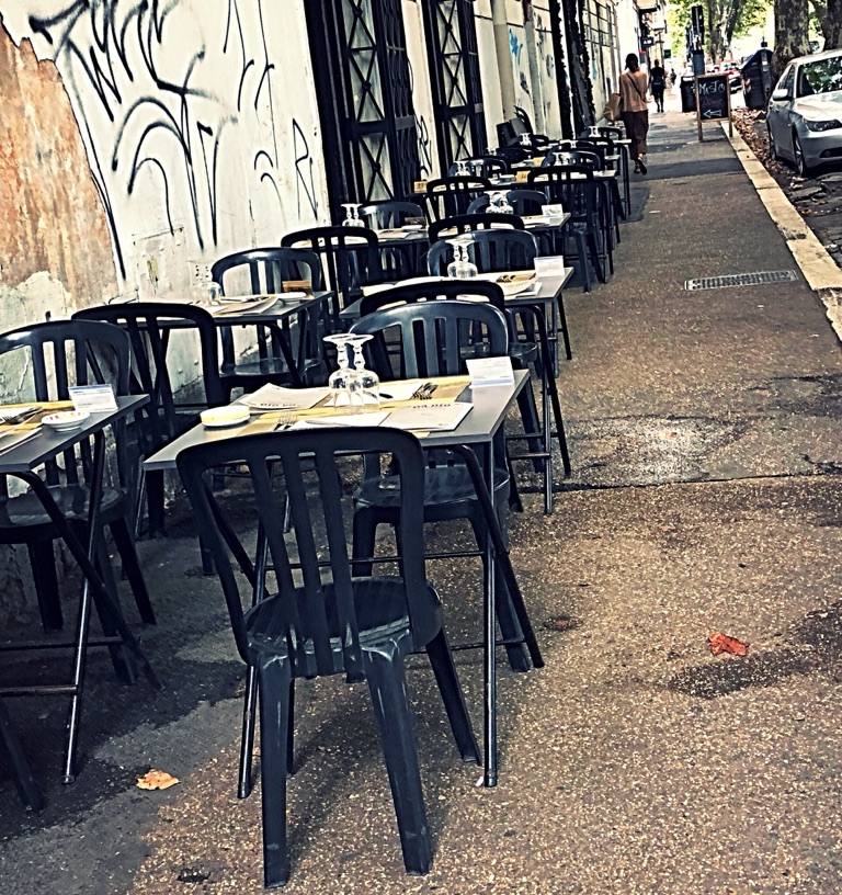 Interesting how the sidewalk becomes an extension of every little restaurant.