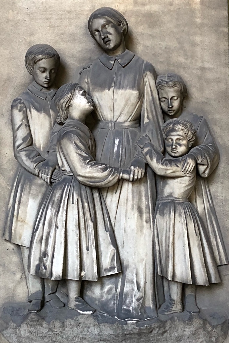 “I am making a monument to place in the Protestant Cemetery andI am always asking myself if she knows it and if she can see it. It represents the the angel of Grief, in utter abandonment, throwing herself with drooping wings and hidden face over a funeral altar. It represents what I feel. It represents Prostration. Yet to do it helps me.”