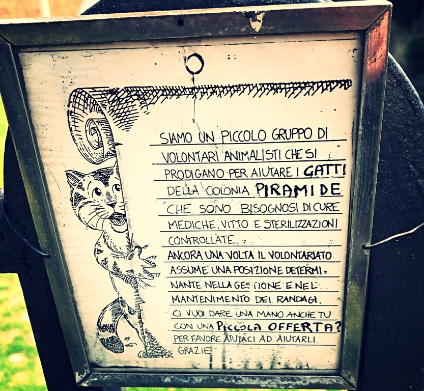 The cemetery and the adjoining pyramid, \240that was built as a tomb between 18 and 12 BC, are both home to many happy cats. The society that cares for the cats accepts \240donations \240to support their upkeep