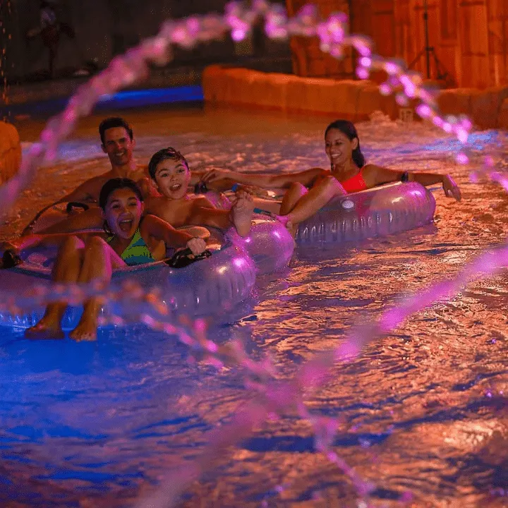 Relax in the lazy river or soak in one of the whirlpool hot tubs. Enjoy a meal with your sweet or cozy up in your cabin.