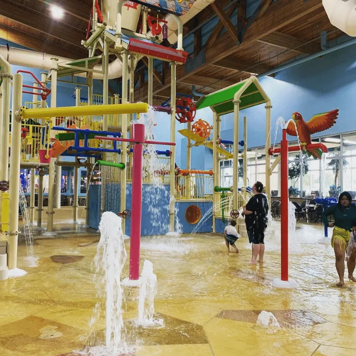 This park features a water-filled jungle gym with shorter open top slides, water cannons, and a huge bucket for kids of all ages! There’s a lazy river, a zero depth entry pool for the youngest ones, an outdoor splash pad, 4 thrilling raft waterslides, and so much more.