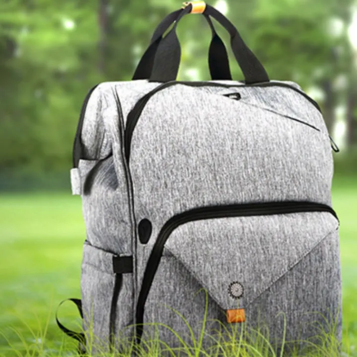 The pocket opens and lays flat, and everything stays in place. In addition, the backpack comes with a USB charging port to plug a power bank into to charge devices, and it’s water and splash resistant, keeping your things dry in the event of rain.