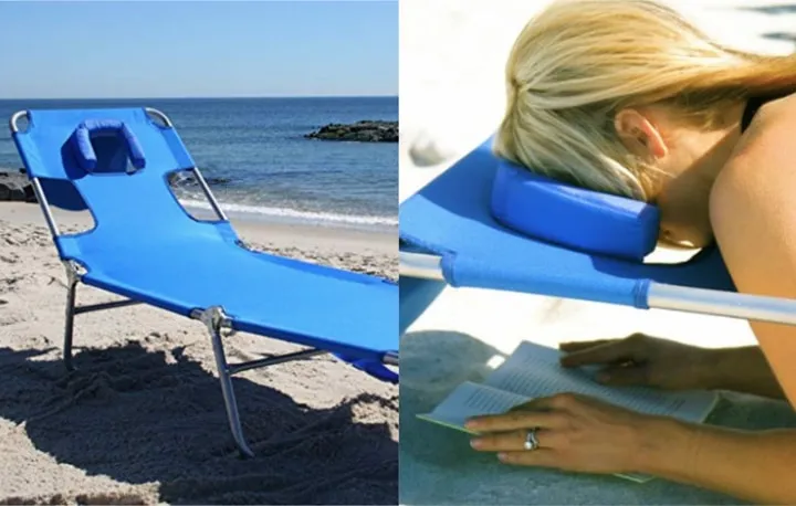 The cushioned headrest supports your head whether you’re on your tummy or back so you can even out your tan, read, snooze and block the sun in supreme comfort.