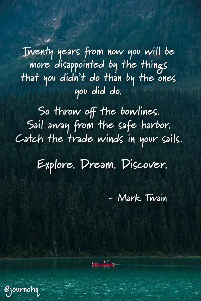 “Twenty years from now you will be more disappointed by the things that you didn’t do than by the ones you did do. So throw off the bowlines. Sail away from the safe harbor. Catch the trade winds in your sails.