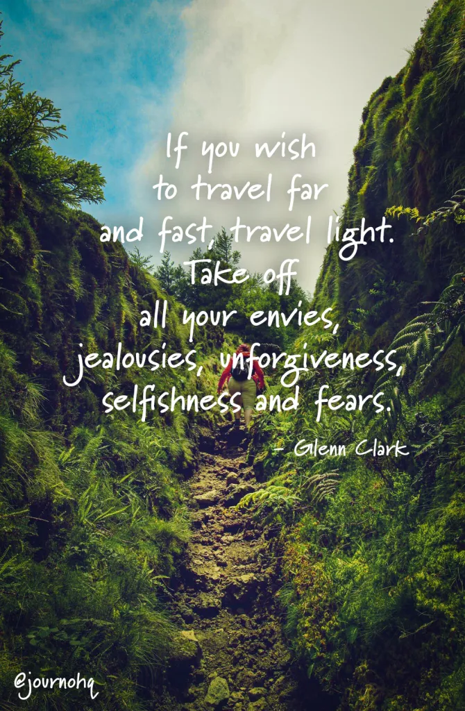 “If you wish to travel far and fast, travel light. Take off all your envies, jealousies, unforgiveness, selfishness and fears.” – Glenn Clark