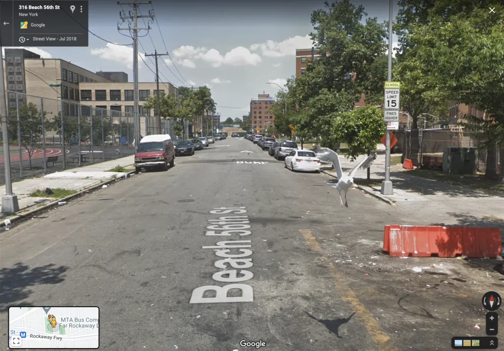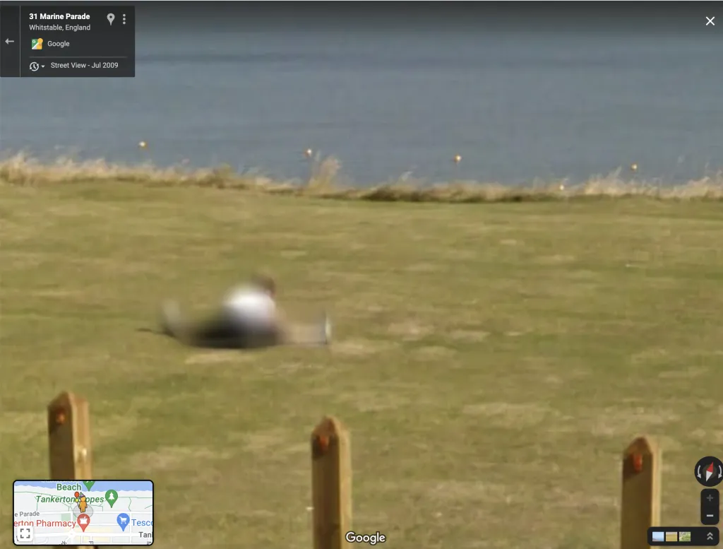The Google street view has captured yet another image for our list of funny Google street views – a seagull live in action!