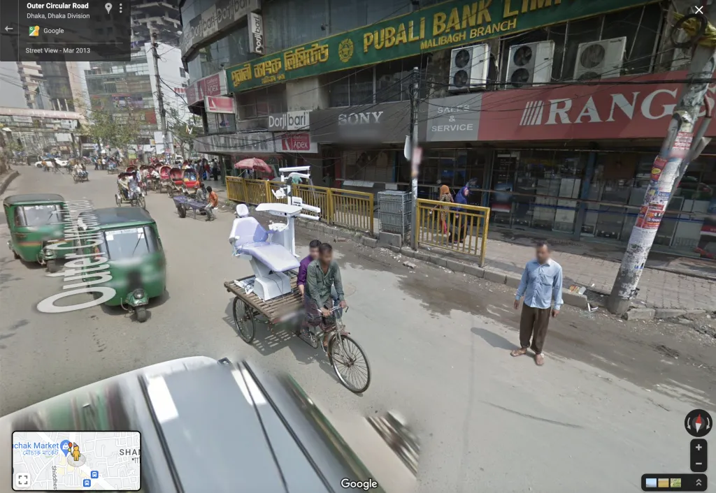 Two men in India were spotted transporting a dentist’s chair down the street. Click here to see it on Google street view.