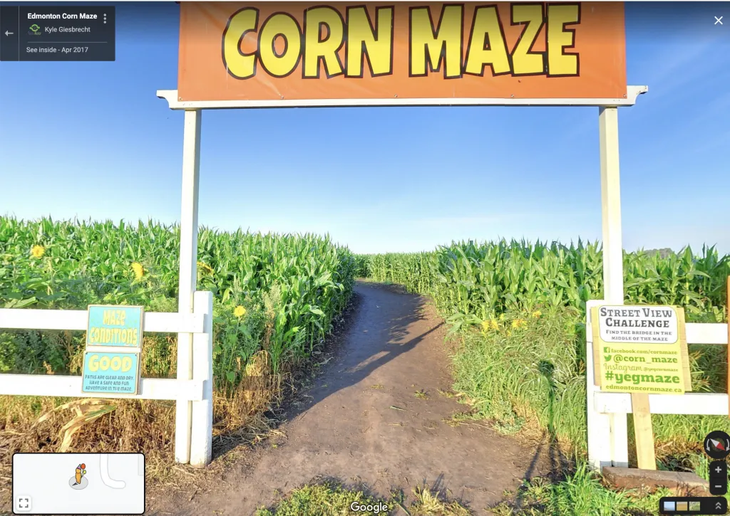 You can walk through this Corn Maze in Alberta, Canada. See if you can get out! Click here to see it on Google street view.
