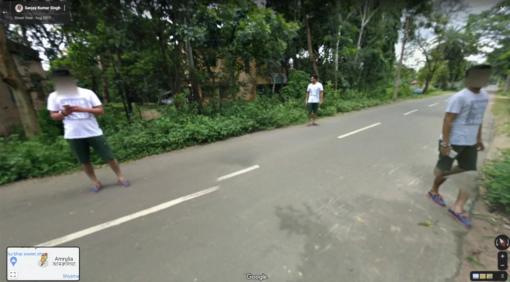 This man is seen a total of six times in this 360-degree panorama of an area in Mehadipur, India. Click here to see it on Google street view.