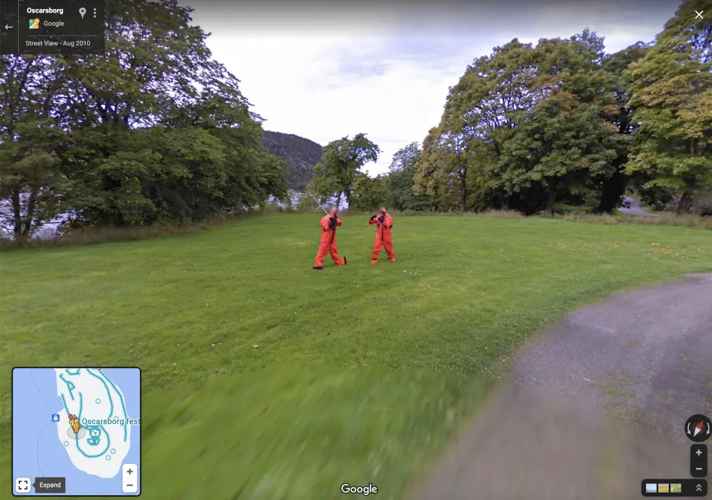 In Oscarsborg, Norway, you’ll find two orange men in a field.